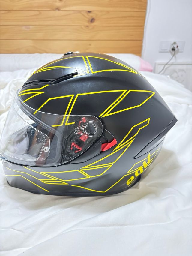 Detalles del productoCasco integral AGV K-5 S Hurricane 2.0 con un diseño llamativo en negro y amarillo.
