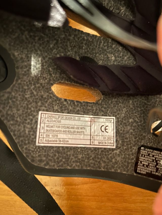 Casco ALLCROSS para ciclismo y patinaje. - Talla ajustable: 56-62cm - Certificación EN 1076 - Peso: 550gr - Fabricado en China - Fecha de fabricación: 01.2021