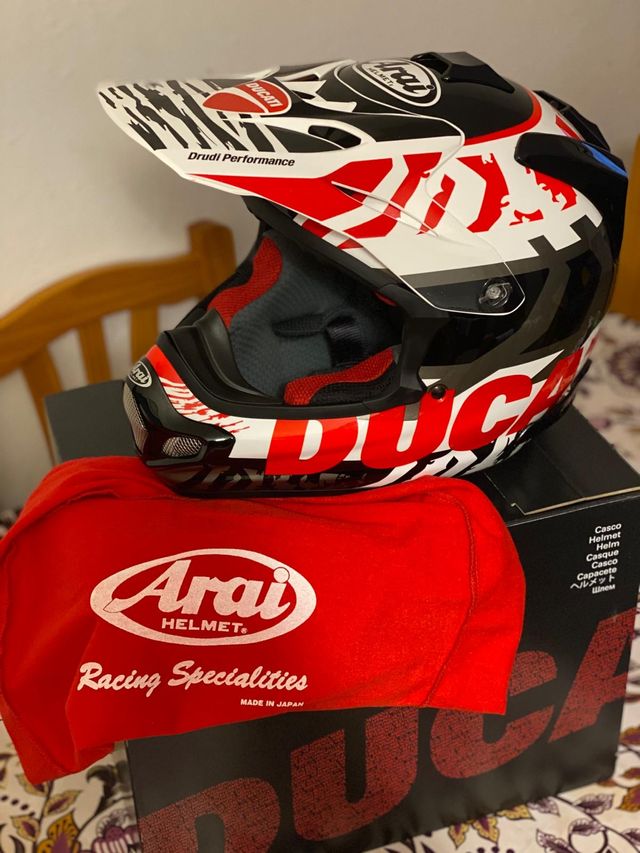 Detalles del productoCasco de moto Arai Ducati con diseño Drudi Performance. Se encuentra en excelente estado, casi sin uso.