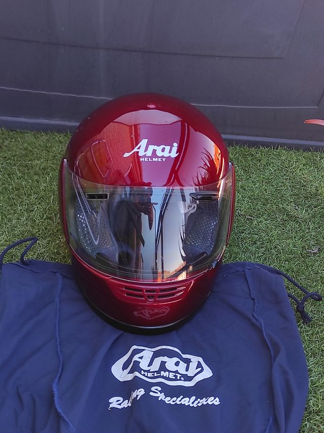 Detalles del productoCasco de moto Arai NR-3 en color rojo brillante. Incluye funda protectora. Exterior en buen estado, la espuma interior se dehace. Precio negociable.