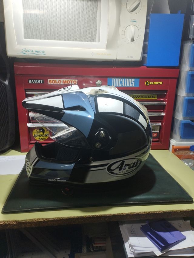 Detalles del productoCasco de moto Arai con diseño deportivo.