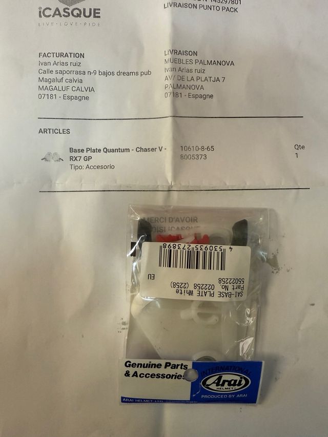 Pieza de recambio para casco Arai. - Modelo: Base Plate Quantum - Chaser V - RX7 GP. - Tipo: Accesorio.
