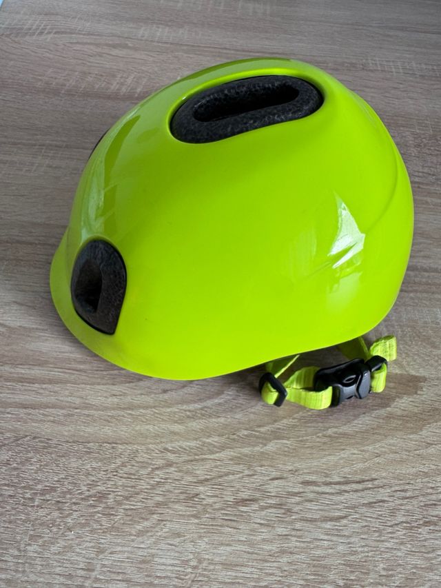 Casco de bicicleta para bebés en color amarillo fluor de la marca B-Twin. Tamaño 2XS 44-49cm. Está como nuevo