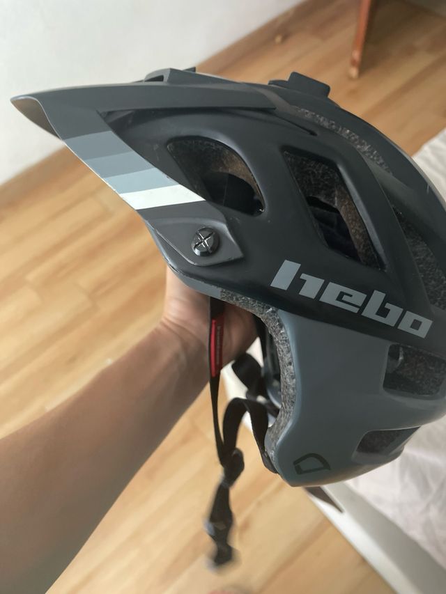 Detalles del productoCasco de bicicleta de la marca Hebo, en color negro con detalles grises. Está en buen estado aunque tiene algunos signos de uso. No ha recibido ninguna caida.