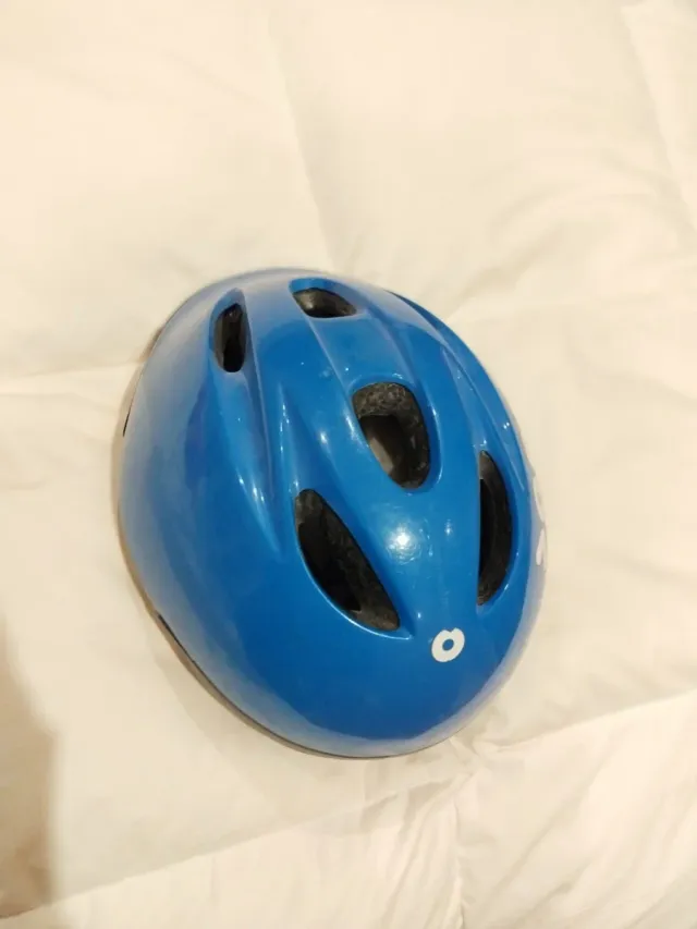 Detalles del productoCasco de bicicleta para niños en color azul brillante. Diseñado para proteger durante las actividades al aire libre.