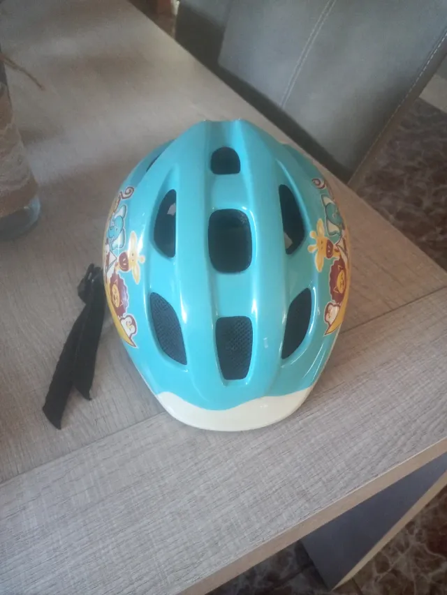 Casco de bicicleta para niños en color azul claro con divertidos dibujos. - Diseño con ventilación. - Correas ajustables.
