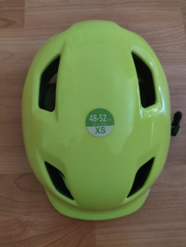 Casco de bicicleta para niños BTWIN en color verde lima, talla XS (48-52 cm). Está en buen estado. - Marca: BTWIN - Talla: XS (48-52 cm) - Color: Verde lima