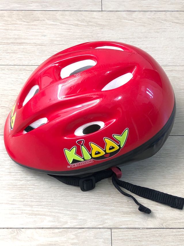 Casco Kiddy Small niño de Decathlon para bici en colot rojo. De 47 a 53 cm. De segunda mano con alguna pequeña marca en el casco (ver imagenes)