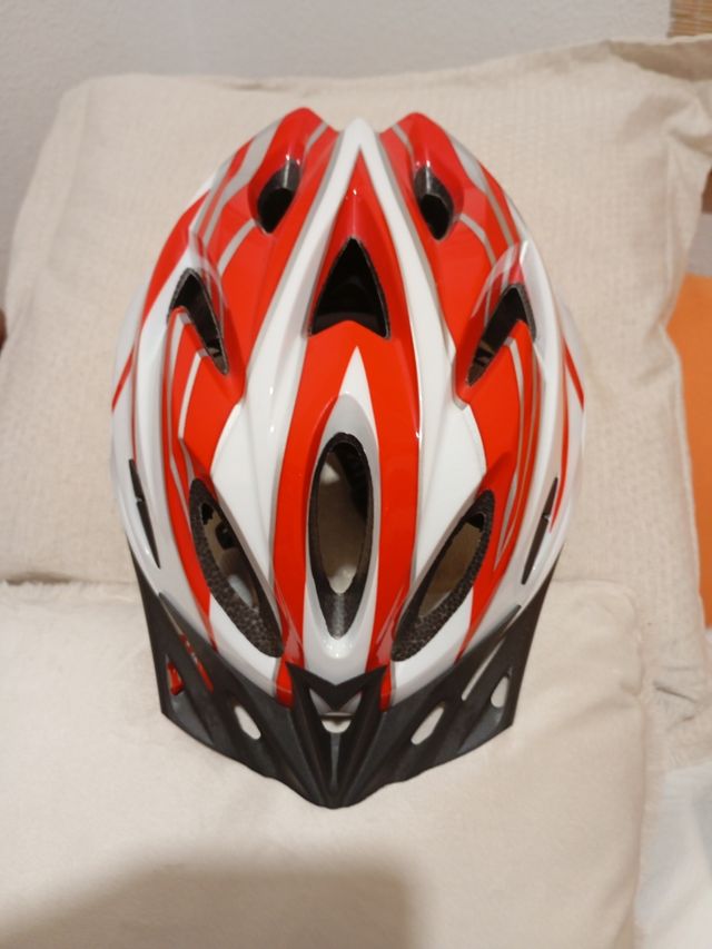 Casco transpirable, muy bien ventilado con visera desmontable y ruleta de ajuste. Talla M/L.