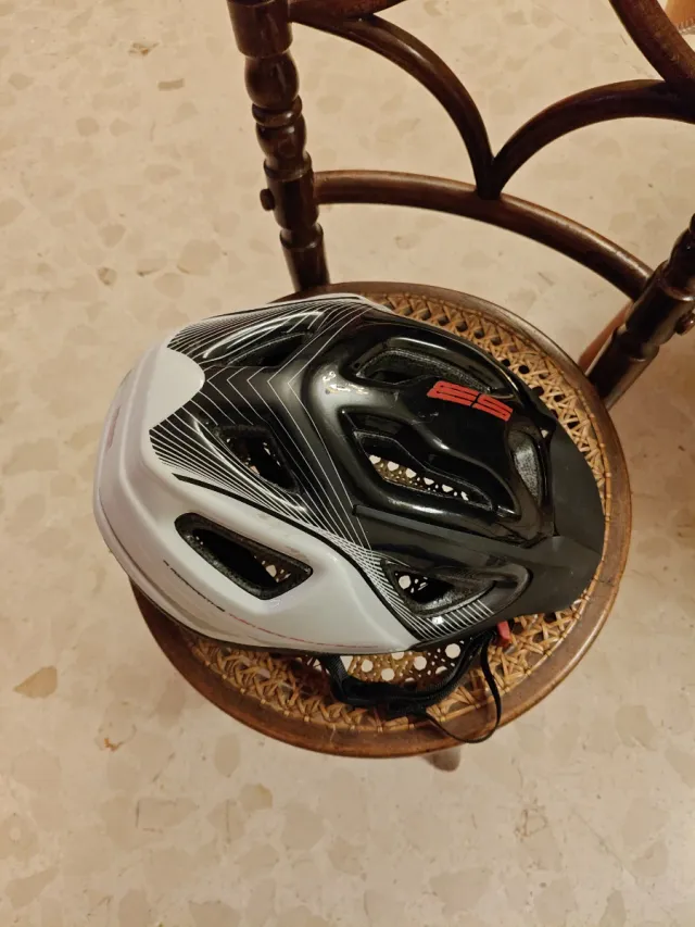 Casco de bicicleta con diseño Bitwin. -Diseño en blanco y negro con detalles plateados. - Visera integrada. - Múltiples ventilaciones para mayor comodidad.