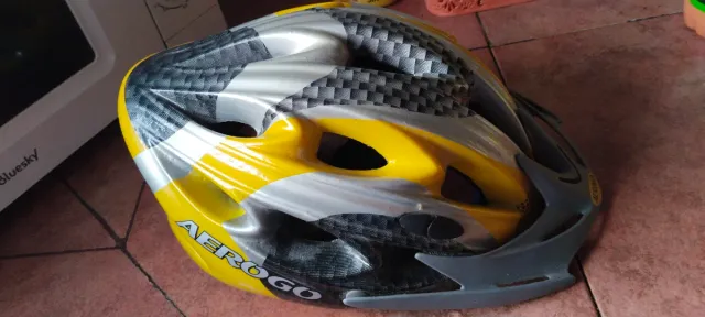 Detalles del productoCasco de bicicleta infantil de la marca Aerogo. Diseño deportivo en color amarillo y gris con detalles en negro.