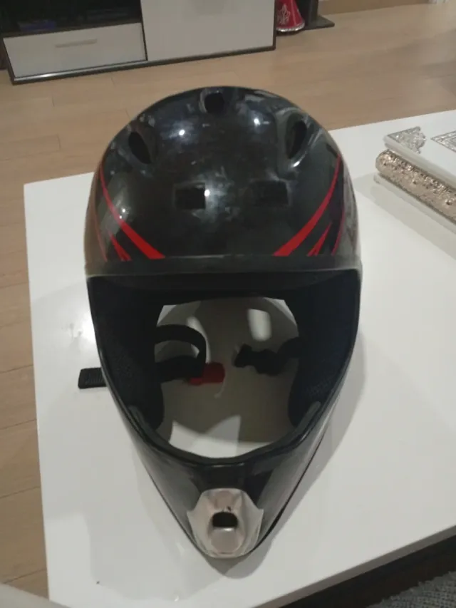 Detalles del productoCasco de bicicleta en color negro con detalles en rojo. Diseñado para proteger durante la práctica deportiva.