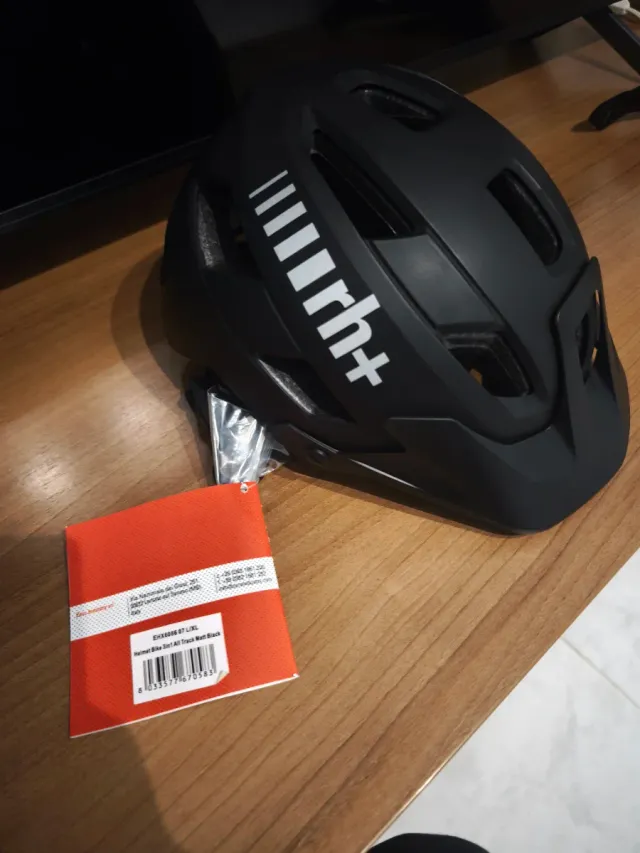 Detalles del productoCasco de ciclismo marca RH+ en color negro, modelo All Track.
