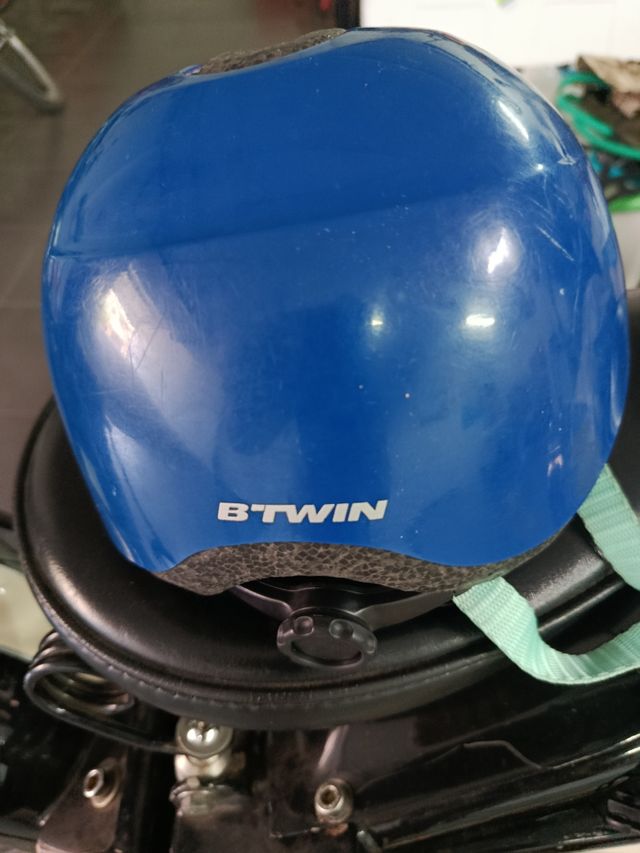 Casco de bicicleta Btwin en color azul, diseñado para niños. Ideal para proteger durante los paseos. - Marca: Btwin - Color: Azul - Ajuste regulable