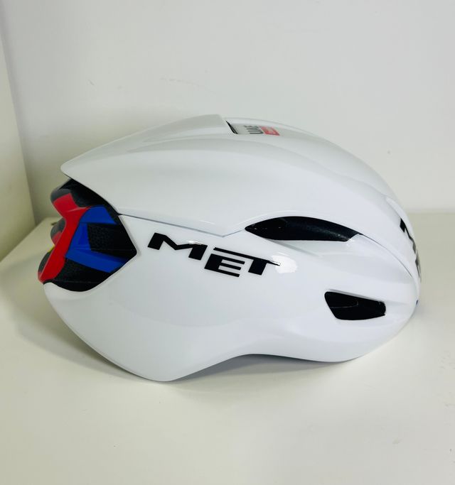 Detalles del productoCasco de ciclismo MET de color blanco, compacto y a estrenar.