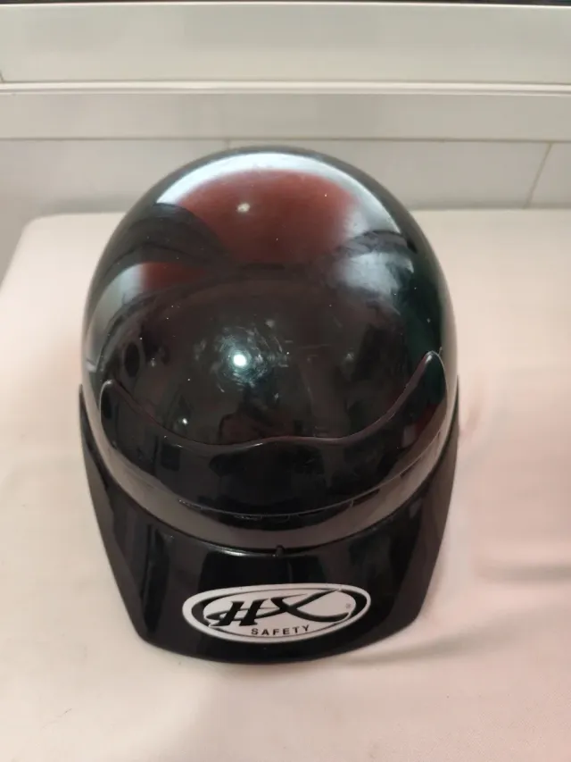 Casco negro para ciclomotor con logo HX Safety. - Diseño brillante. - Visera integrada.