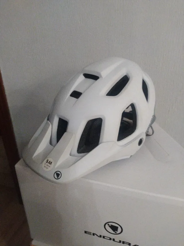 Casco de bicicleta de la marca Endura, talla S-M. 51-56cm - Color blanco. - Diseño ventilado. - Visera integrada y ajustable.