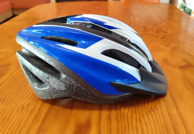 Casco de bicicleta marca Bell, diseño moderno y deportivo. - Color azul y blanco. - Visera integrada. - Múltiples ventilaciones.