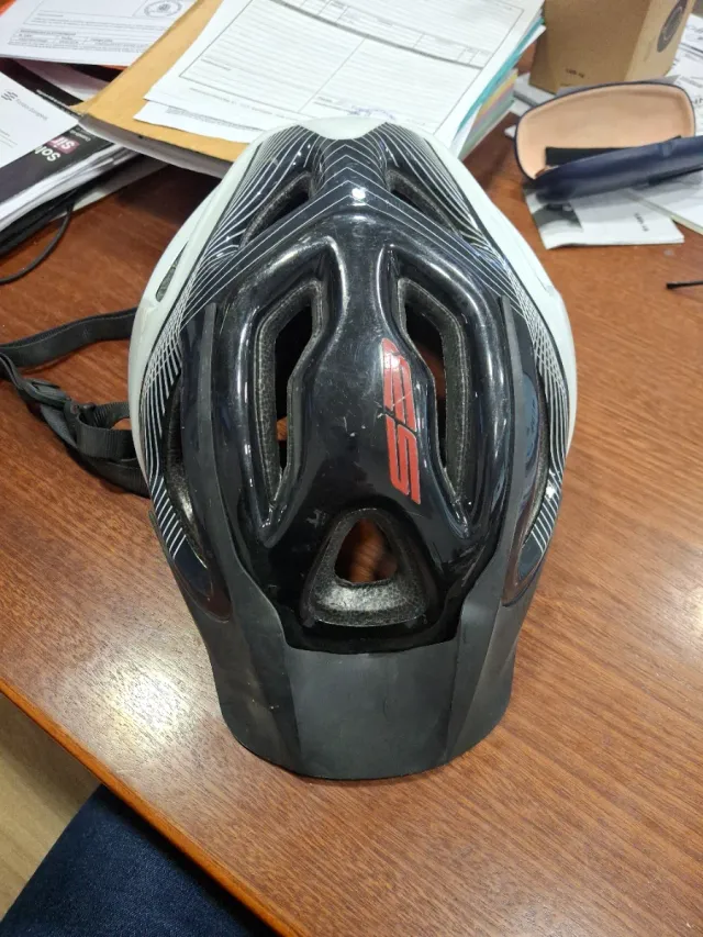 Casco de bicicleta con diseño moderno y ventilado. BTWIN Tamaño 57-62cm - Color blanco y negro. - Detalles de líneas plateadas. - Visera integrada.