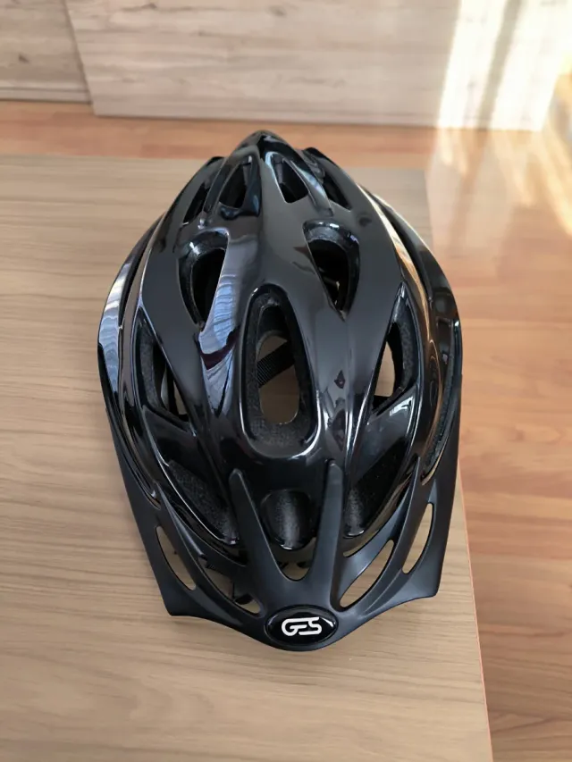 Detalles del productoCasco de ciclismo en color negro con un diseño aerodinámico y ventilado. Cuenta con un logo de la marca GS en la parte frontal.