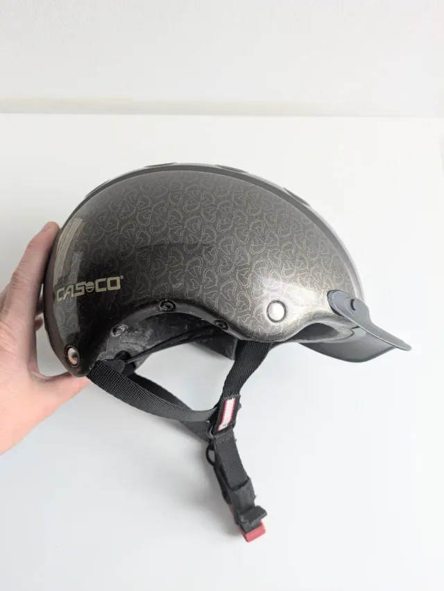 Detalles del productoCasco de equitación con un diseño moderno y elegante. Marca CasCo talla única 52-56 cm. Ajustable atrás.