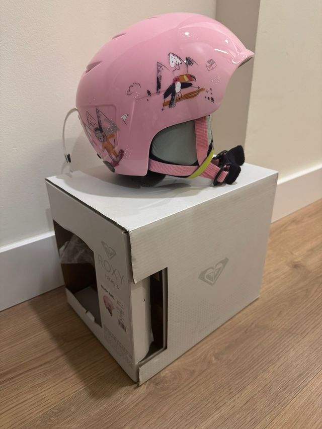 Casco de nieve/esqui/ski de niña con muy poco uso y con su caja. Comprado en El Corte Inglés por 60 €.