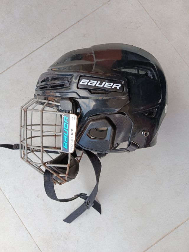 Casco de hockey de la marca Bauer, talla ajustable. En buen estado, aunque la rejilla esta un poco oxidada, pero se puede canviar o quitar.