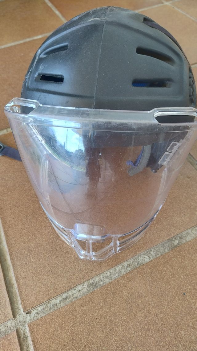 Casco de hockey con visera protectora. - Color negro. - Visera transparente. - Diseño ventilado.