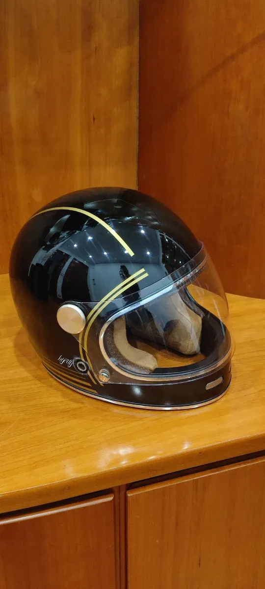 Casco de moto integral con un diseño vintage. Homologado y con cierre Doble D. Está como nuevo,prácticamente sin uso. Ideal para moto Custom/Clasica. Talla XS.