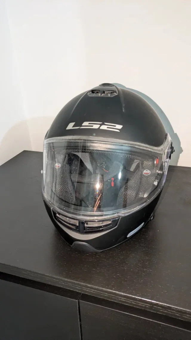 Detalles del productoCasco de moto de la marca LS2 modelo estrobe en color negro mate, Visera transparente. Pequeñas marcas de estar almacenado, Funda de trasporte original. Usado en una sola ocasión.