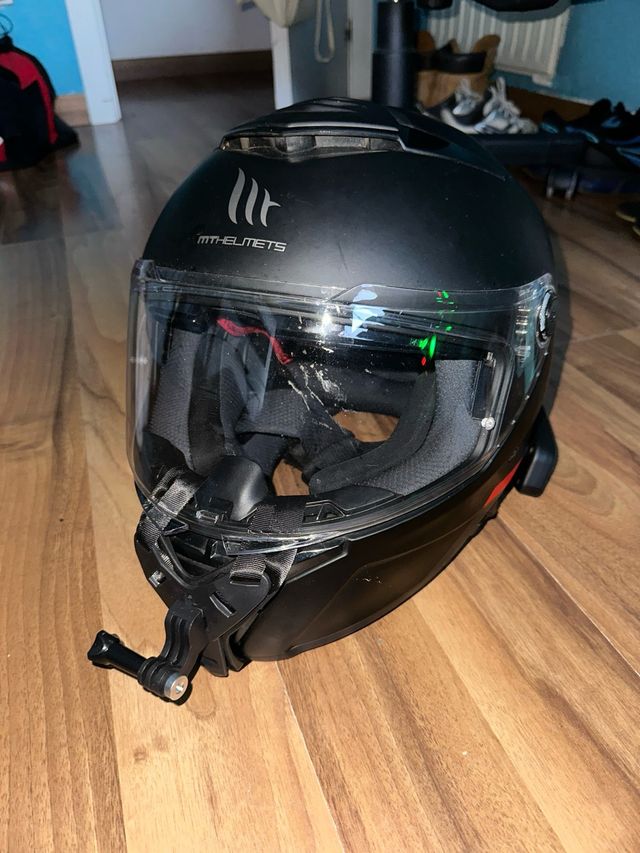 Detalles del productoCasco de moto MT Helmets en color negro. Diseñado para ofrecer protección y comodidad.