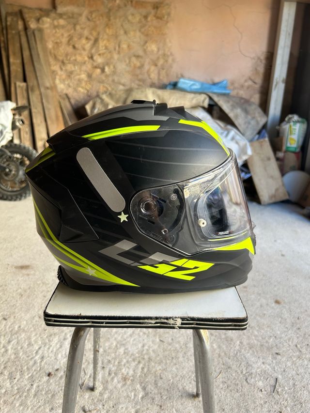 Casco de moto negro y amarillo LS2