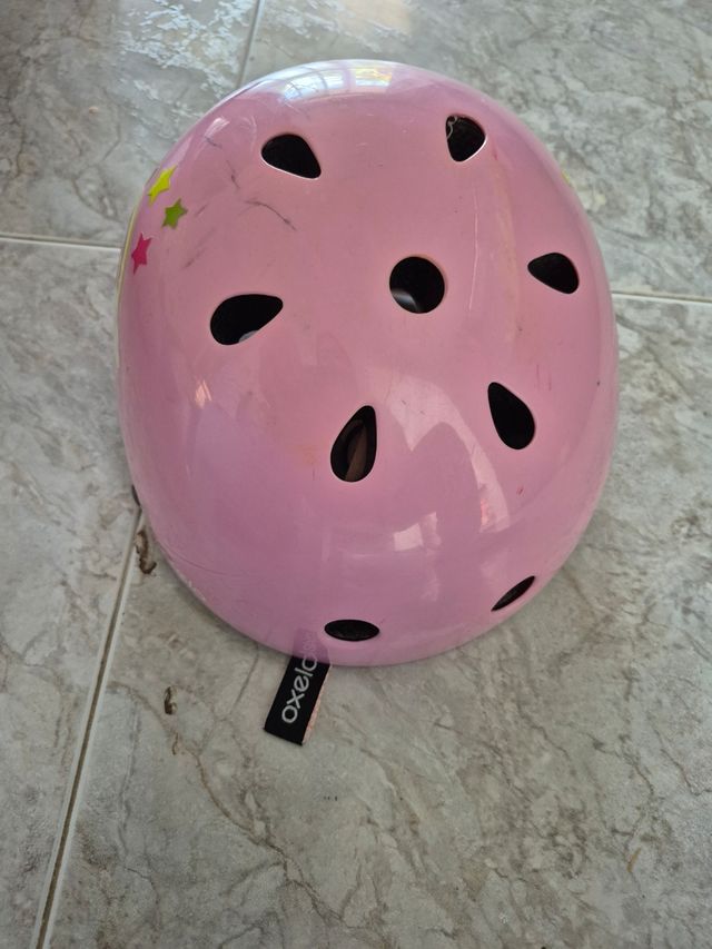 Detalles del productoCasco de skate en color rosa, ideal para niñas. Cuenta con un diseño divertido con estrellas.
