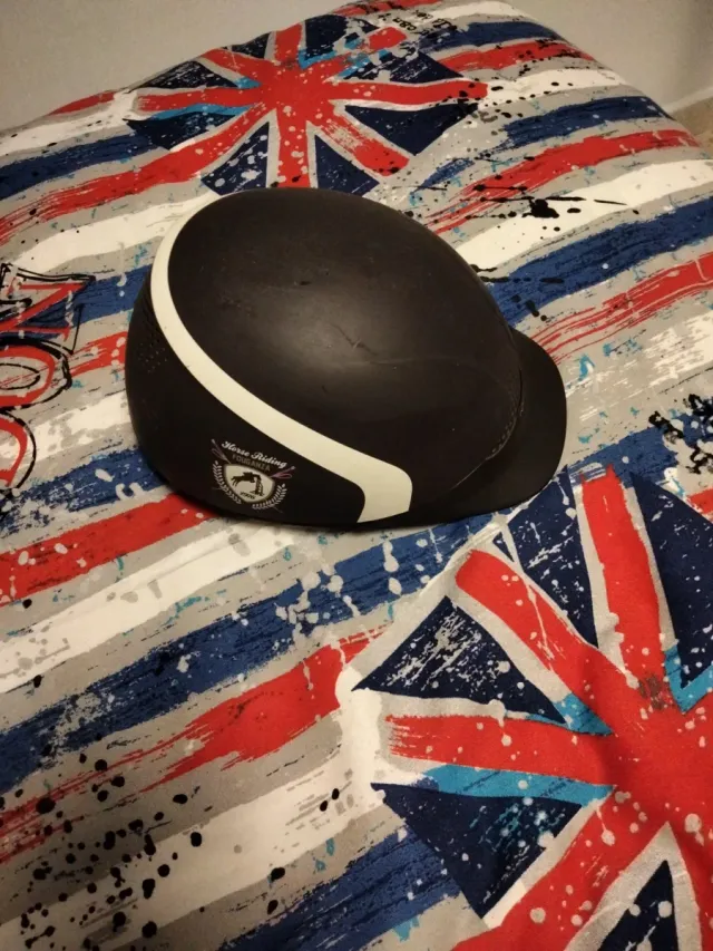 Casco de equitación para niño con diseño moderno. Talla 53-55 cm - Color marrón con detalles blancos. - Insignia de Horse Riding en el lateral.