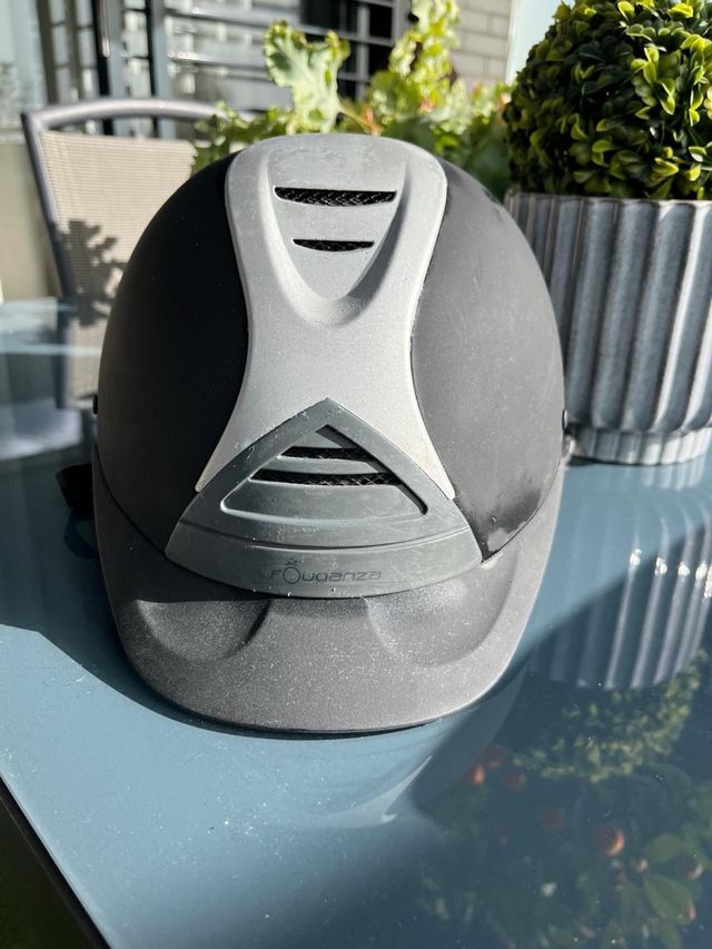 Casco de equitación en color negro y gris, talla 56. - Diseño ventilado. - Marca Rouquanza.