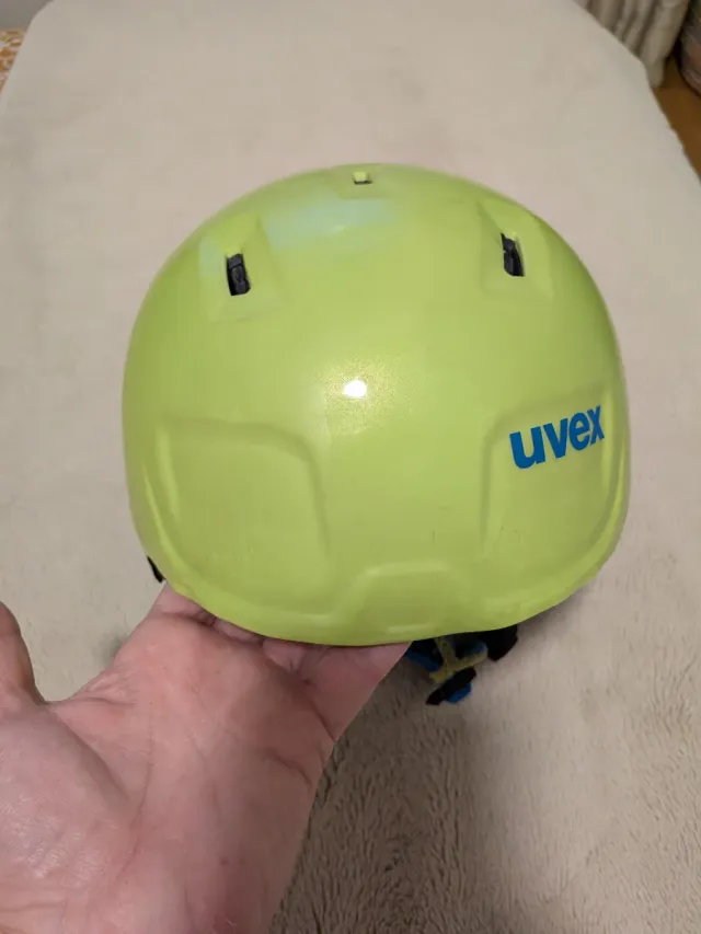 Detalles del productoCasco de esquí de la marca Uvex, diseñado para niños de entre 5 y 8 años. Su color verde lima lo hace muy visible en la nieve.