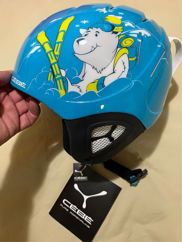 Casco de esquí o snowboard para niños de la marca Cebé. Diseño divertido con un oso polar esquiando.
