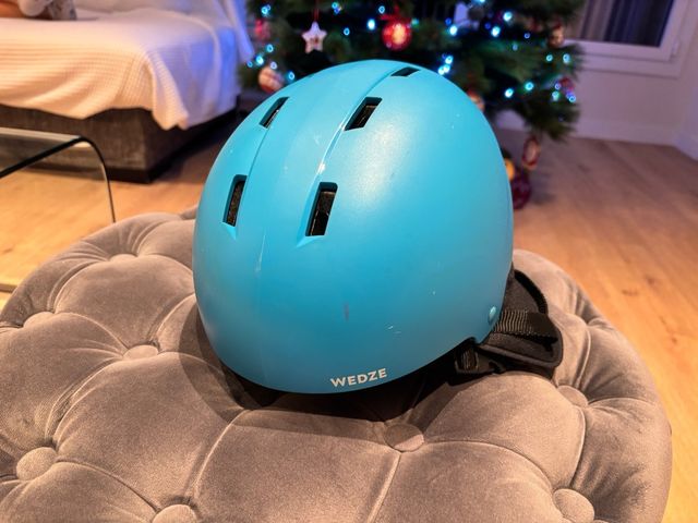 Detalles del productoCasco de esquí de la marca Wedze, diseñado para niños para esquiar o hacer snowboard. Es de color azul y cuenta con un sistema de ajuste.