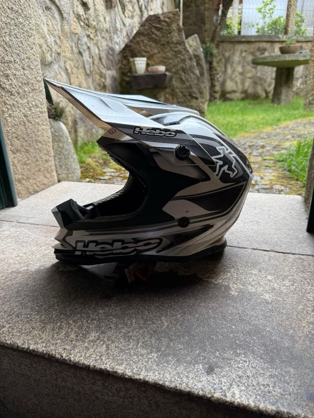 Casco de motocross Hebo, en buen estado. Ideal para la práctica de este deporte. - Marca: Hebo - Diseño: Moderno y deportivo - Color: Blanco y negro