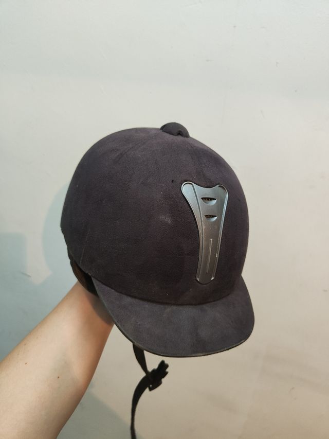 Casco de hípica de la marca Fouganza, en color negro, aterciopelado. Está en muy buen estado, solo tiene un poco de polvo por haber estado en un trastero.