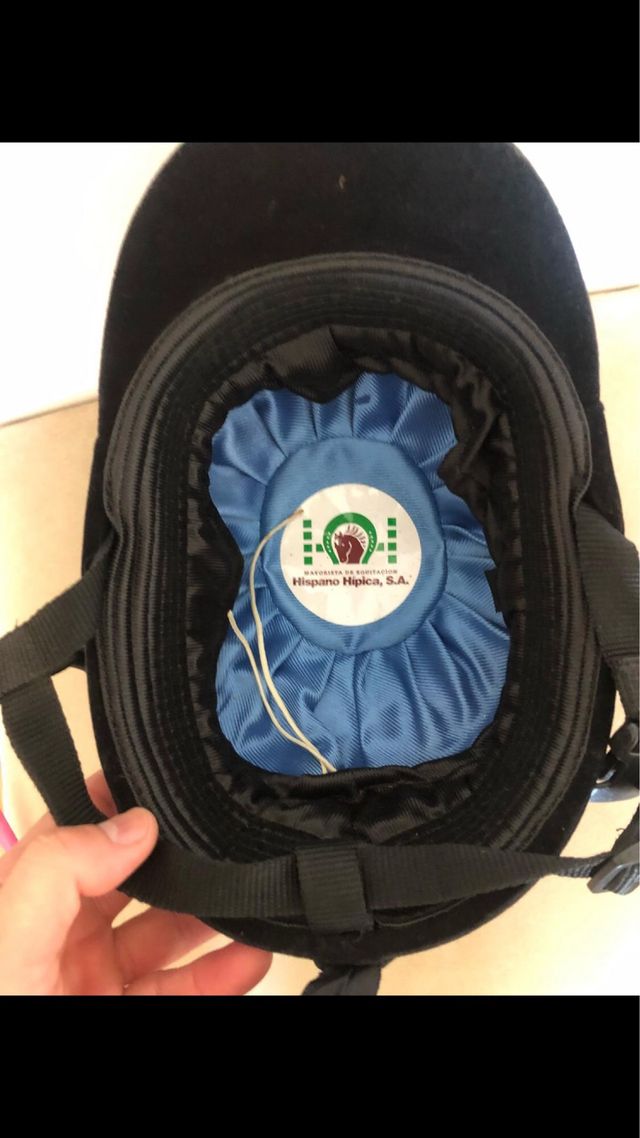 Detalles del productoCasco de hípica de la marca Hispanohípica, talla 7 1/4 (59). Está en buen estado y apenas se ha usado. Se incluye un casco. - Color negro. - Material aterciopelado. - Diseño clásico.