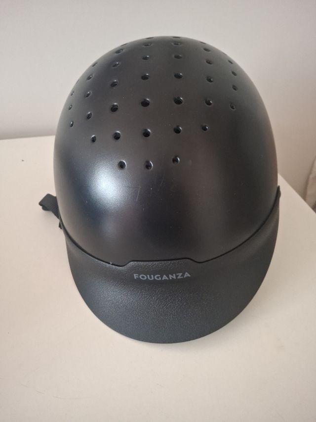 Casco de equitación en color negro, con ventilación. - Marca: Fouganza - Diseño con múltiples orificios para ventilación.