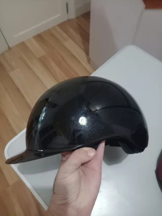 Casco de hípica en color negro con acabado brillante. Diseñado para la seguridad y comodidad. - Diseño liso y elegante. - Visera integrada.marca fouganza