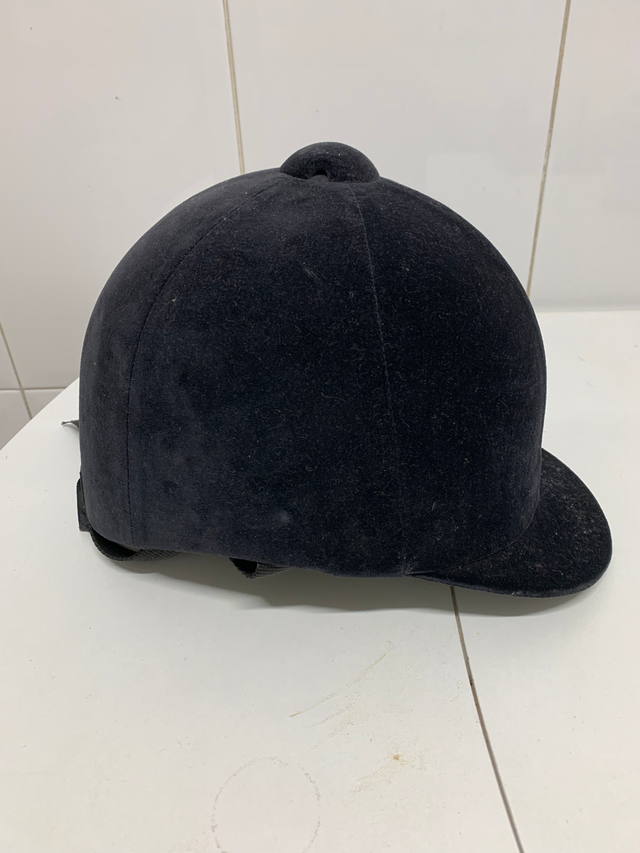 Casco de equitación de terciopelo negro para niño de 9 a 12 años - Cubierta de terciopelo. - Correa ajustable.