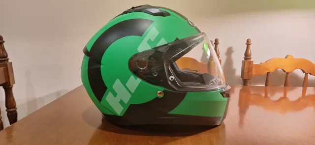 Detalles del productoCasco HJC C10 integral con un diseño llamativo en verde y negro. Usado muy pocas veces como casco secundario, me lo dieron como bono de regalo.