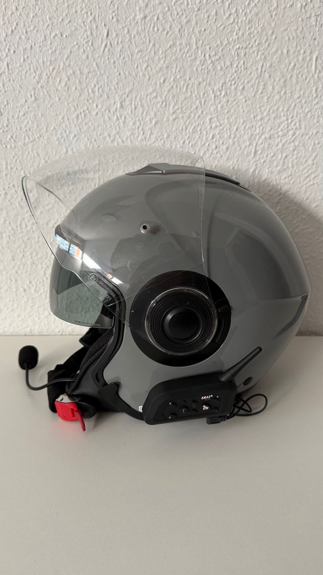 Detalles del productoCasco HJC de talla L con sistema de comunicación Bluetooth integrado. Ideal para tus viajes en moto.