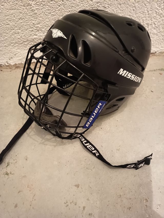 Detalles del productoCasco de hockey negro de la marca Bauer Mission. Diseñado para proteger la cabeza durante el juego.