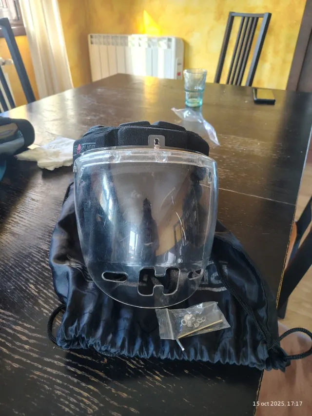 Detalles del productoCasco de hockey para jugador en talla M y color negro. Incluye visera transparente y bolsa de transporte.
