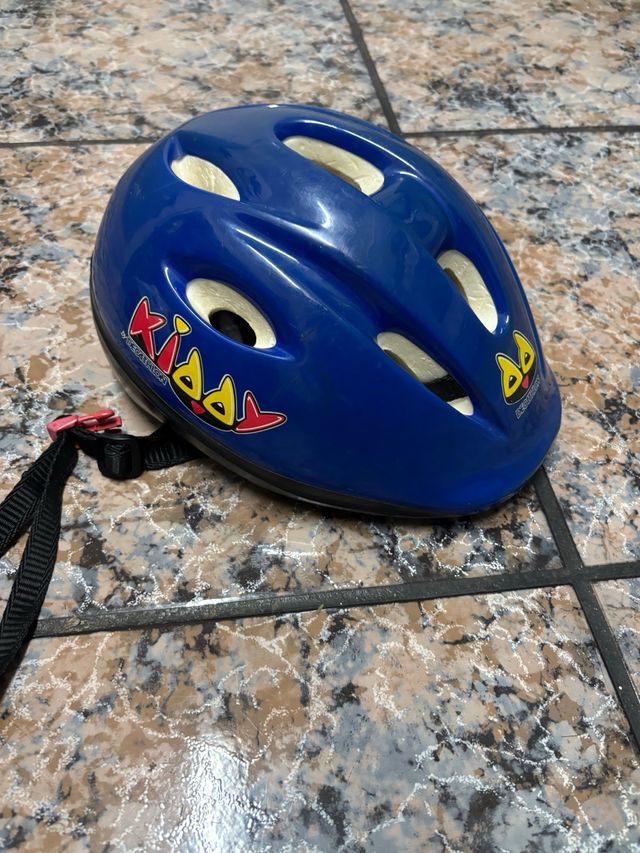 Casco de protección para niños en color azul. - Diseño con ventilación. - Correa ajustable con cierre de seguridad. - Adhesivos decorativos infantiles. - Talla 52-56