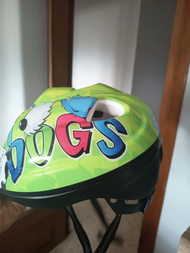 Casco de protección para niños con un divertido diseño de perros. - Diseño llamativo y colorido. - Ideal para actividades al aire libre. - Correas ajustables para un buen ajuste. Talla M